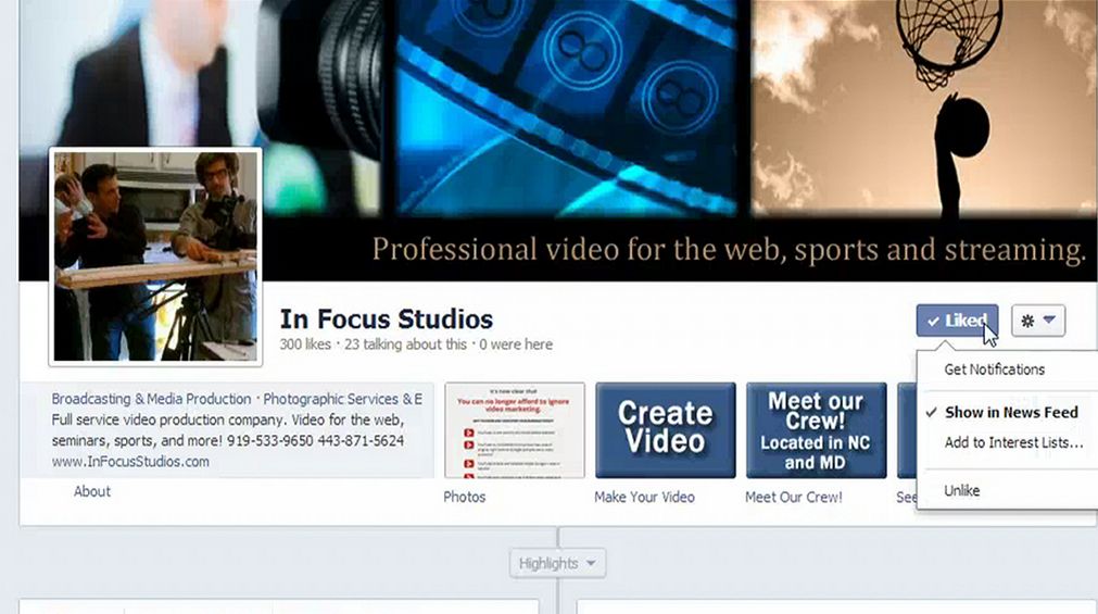 If you’d like to see In Focus Studios posts in your news feed, simply visit our Facebook page and hover over the “Liked” Box. The box will be checked if you’ve liked our page. A dropdown will appear, and you’ll see “Show in News Feed” in bold. Go ahead and click there to begin seeing In Focus Studios posts in your news feed.